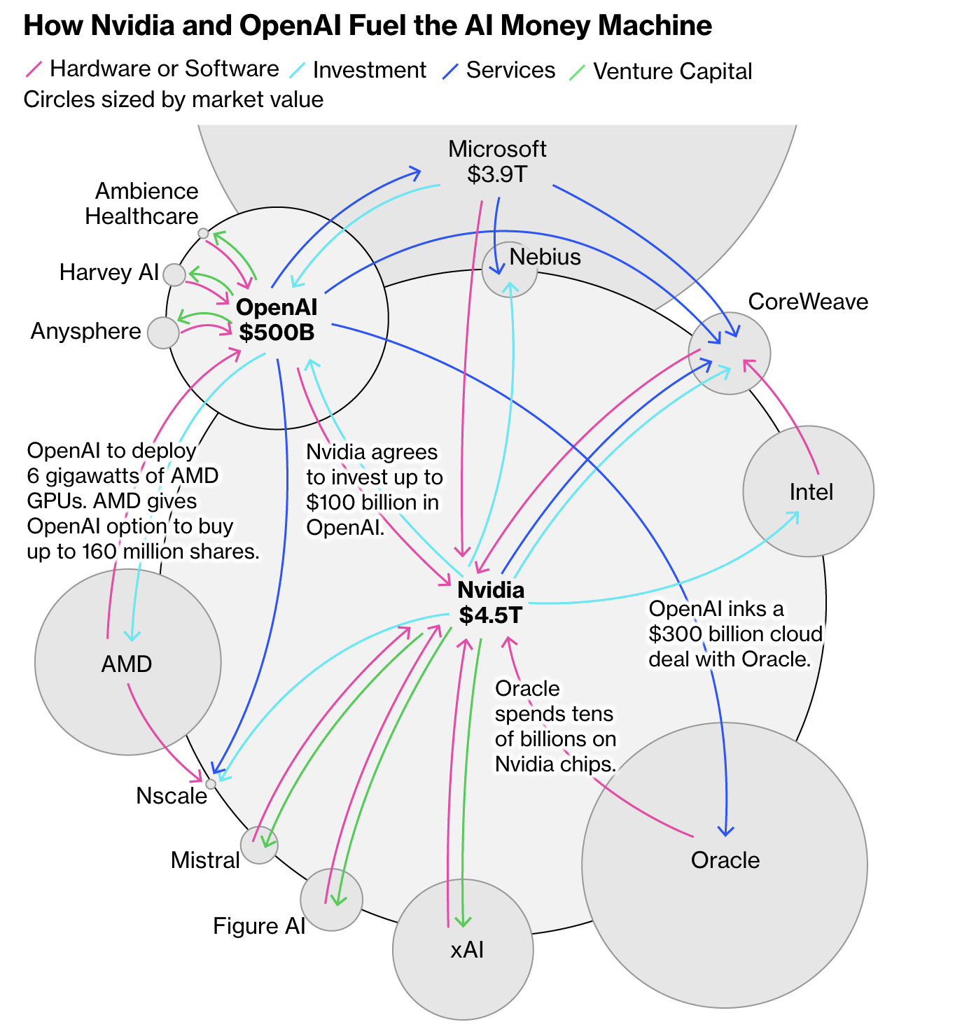 “In the late 1990s, circular trading usually centered on advertising and cross-selling among startups, with companies buying services from each other to inflate perceived growth,” said Paulo Carvao, Senior Fellow at Harvard Kennedy School. “Today’s AI companies have tangible products and customers, but their spending is still outpacing their profits.”