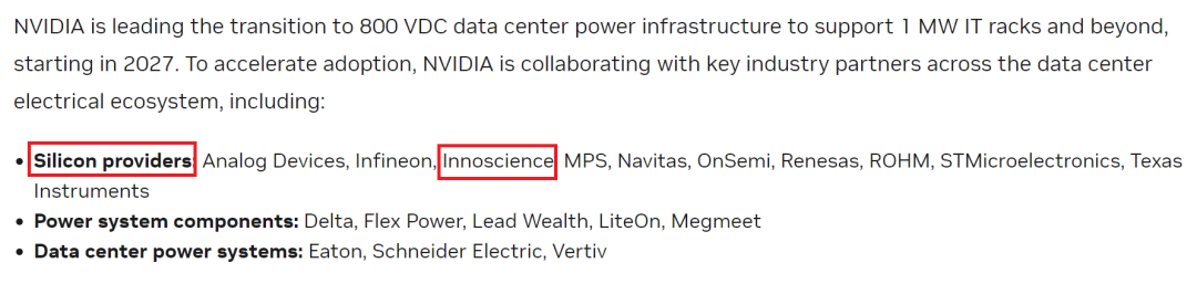 To accelerate this shift, Nvidia has begun collaborating with major players across the data center electrical ecosystem—including Innoscience, which will supply all-GaN power solutions for Nvidia’s next-generation high-voltage systems.